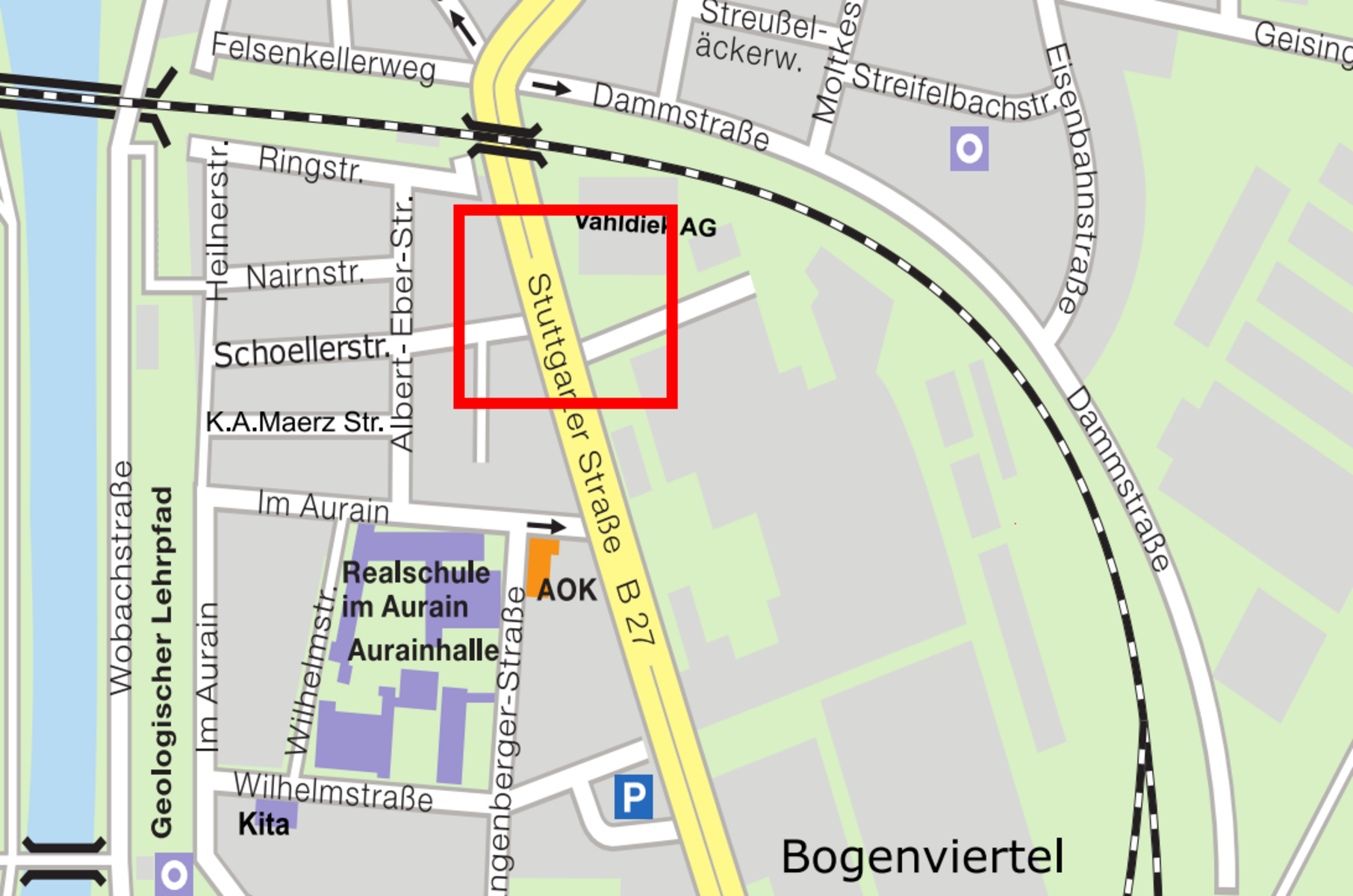 Ab Mittwoch, 29. April bis voraussichtlich Freitag, 22. Mai 2026 können die Fußgängerquerungen an der Schöllerstraße und B 27, Höhe Big Park, vorübergehend nicht genutzt werden.