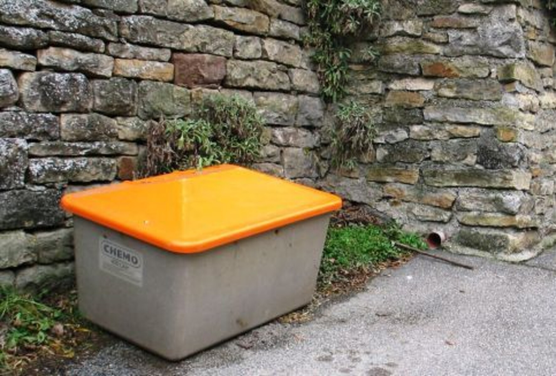 Die Streugutbehälter werden regelmäßig kontrolliert und aufgefüllt. Die Benutzer der Streugutbehälter werden gebeten, die Behälter nach Entnahme des Streugutes wieder zu verschließen, damit keine Nässe eindringen kann und das Streugut auch bei Frost streufähig bleibt.