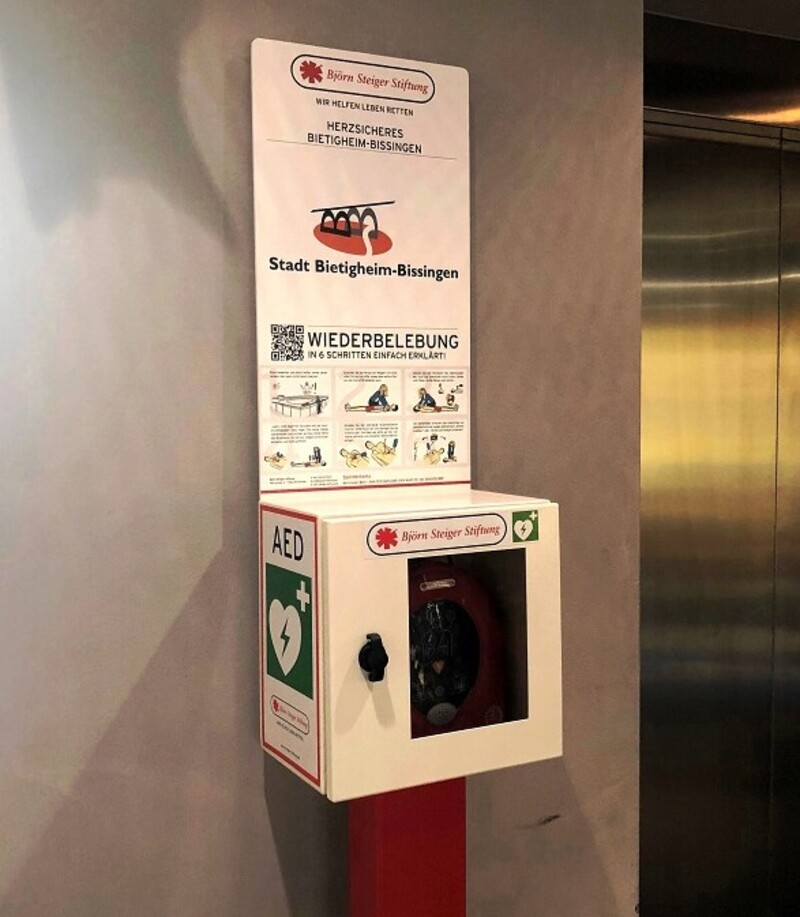 Die Stadt Bietigheim-Bissingen hat in den letzten Monaten, auch dank großzügiger Unterstützung von Sponsoren, im Stadtgebiet zahlreiche Defibrillatoren eingerichtet, die von der Björn-Steiger-Stiftung gewartet werden. So können im Ernstfall schnelle lebensrettende Maßnahmen wie eine Herzdruckmassage auch von Laien durchgeführt werden. Die Björn-Steiger-Stiftung bietet nun auch Schulungen in der Anwendung der Geräte an. Diese sind zwar leicht zu bedienen, aber vielen Helfern wird mit einer Übung sicher die Scheu vor dem Gerät genommen werden können. Stadt und Björn-Steiger-Stiftung laden daher alle interessierten Menschen sehr herzlich ein, an einer solchen Schulung teilzunehmen. Es entstehen hierfür keine Kosten, auch eine Anmeldung ist nicht erforderlich.
