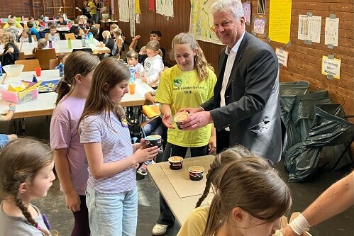 Oberbürgermeister Jürgen Kessing ließ es sich auch in diesem Jahr nicht nehmen, die Kinder bei der diesjährigen Stadtranderholung in Metterzimmern mit frischem Eis zum Nachtisch zu überraschen und in Bissingen Springseile, Strandschläger und Bälle mitzubringen.
