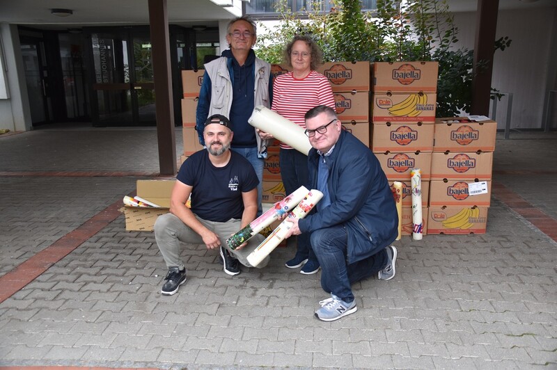 Anfang Oktober konnten nun über 600 kg Kerzen und Wachsreste in 31 Bananenkisten an den Vorsitzenden von Dobre e. V. Ukraine Hilfe im Rheinland Ralf Link und sein Team übergeben werden. Zusätzlich wurden noch über 800 kg aus Trochtelfingen in die Gemeinde St. Johannes gebracht, so dass sich die Anfahrt aus Köln doppelt gelohnt hat.