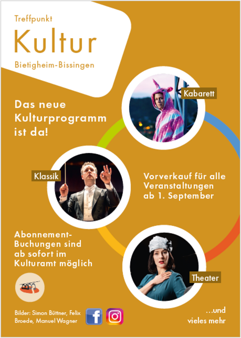 Für die Saison 2025/2026 hat das Kulturamt der Stadt Bietigheim-Bissingen wieder ein attraktives Kulturprogramm entwickelt. Es ist jetzt auch online zu finden unter www.bietigheim-bissingen.de im Themenbereich Kultur, Sport & Freizeit / Veranstaltungen / Kulturprogramm. Das gedruckte Programmheft ist in den bekannten Auslagestellen zu finden.