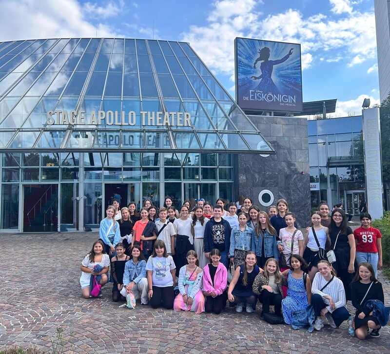 So unternahmen beide Arbeitsgemeinschaften (AGs) einen besonderen Ausflug nach Stuttgart. Rund 40 Kinder machten sich gemeinsam mit ihren Lehrerinnen Eva Geiger, Miriam Wiesen, Silke Eisenbeiß und Sabine Scheyhing auf den Weg, um das Musical „Die Eiskönigin" im Stage Apollo Theater zu besuchen.