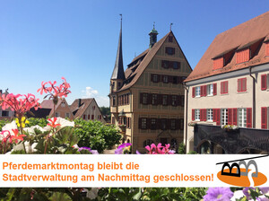 Am Montag, 1. September 2025 sind die Stadtverwaltung sowie die Tourist Information in den Marktplatz Arkaden wegen des Pferdemarktumzuges ab 12 Uhr geschlossen. Die Stadtverwaltung bittet um Beachtung und Verständnis.