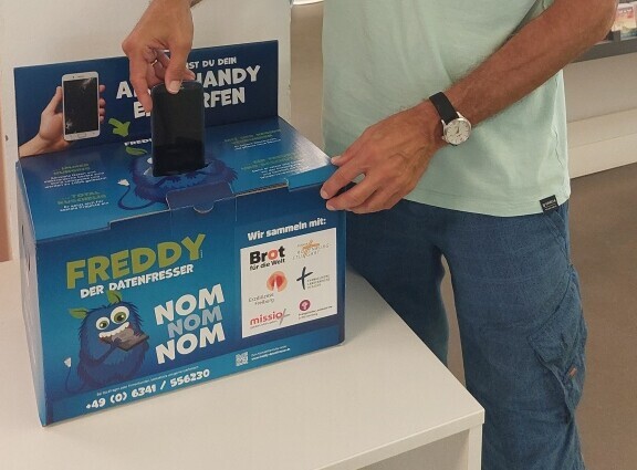 Der Arbeitskreis Fairtradestadt Bietigheim-Bissingen hat in der Otto-Rombach-Bücherei und in der katholischen Laurentiuskirche eine Handysammelbox aufgestellt. Der Erlös aus dem Verkauf der Rohstoffe kommt Projekten der kirchlichen Hilfswerke von Missio und Brot für die Welt zugute.