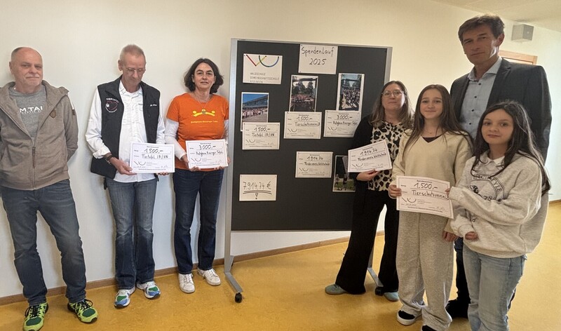 Im Juli fand der traditionelle Spendenlauf der Waldschule statt. Über 400 Schülerinnen und Schüler liefen im Bruchwald fleißig ihre Runden. Dank der jeweiligen persönlichen Spender kam so Runde für Runde ein stattlicher Spendenbetrag von insgesamt 7.914,74 Euro zusammen. Ein toller Erfolg! Am Mittwoch, 08. Oktober 2025 konnten nun die Spendengelder an die festgelegten Empfänger übergeben werden. Die Bietigheim-Bissinger Tafel wird mit 3.000,- Euro unterstützt, die Tiertafel Ludwigsburg/Heilbronn e.V. und der Tierschutzverein Ludwigsburg e.V. bekommen jeweils 1.500,- Euro und der Förderverein der Waldschule erhält 1914,74 Euro für seine umfangreichen Projekte an der Waldschule. Die Spendenempfänger freuen sich sehr über diese großzügige Unterstützung, welche sie gut gebrauchen können. Ihr Dank gilt der Waldschule mit allen beteiligten Schülerinnen und Schülern, Eltern, Verwandten und sonstigen Spendern.