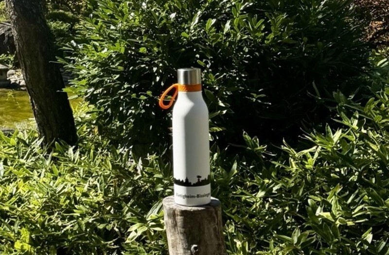 Ab sofort bietet die Tourist Information in Bietigheim-Bissingen eine neue 600 ml Thermotrinkflasche aus recyceltem Edelstahl an. Die Trinkflasche mit doppelwandiger Kupfer-Vakuum-Isolierung hat eine Keramikbeschichtung im Innenraum. Auf der weißen Außenseite befindet sich ein Runddruck der Stadtsilhouette und dem Schriftzug „Liebenswürdig. Bietigheim-Bissingen Lebenswert.“. Eine Besonderheit ist die orangene Halteschlaufe aus Gummi, wodurch die Flasche zu einem idealen Begleiter für den Alltag wird. Die Flasche ist auslaufgeschützt und spülmaschinengeeignet. Damit ist die Flasche ideal für alle Bürgerinnen und Bürger und eignen sich auch hervorragend als Souvenir oder Geschenk für alle, die die Stadt lieben.