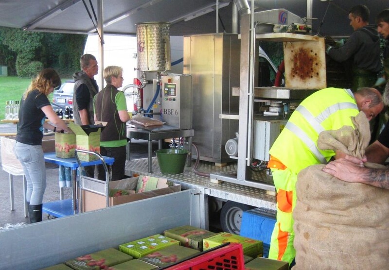 Je nach Anmeldung können zwischen 30 kg und 400 kg Äpfel und Birnen verarbeitet werden. Aus 150 kg Äpfeln erhält man, je nach Sorte, rund 100 Liter Saft.