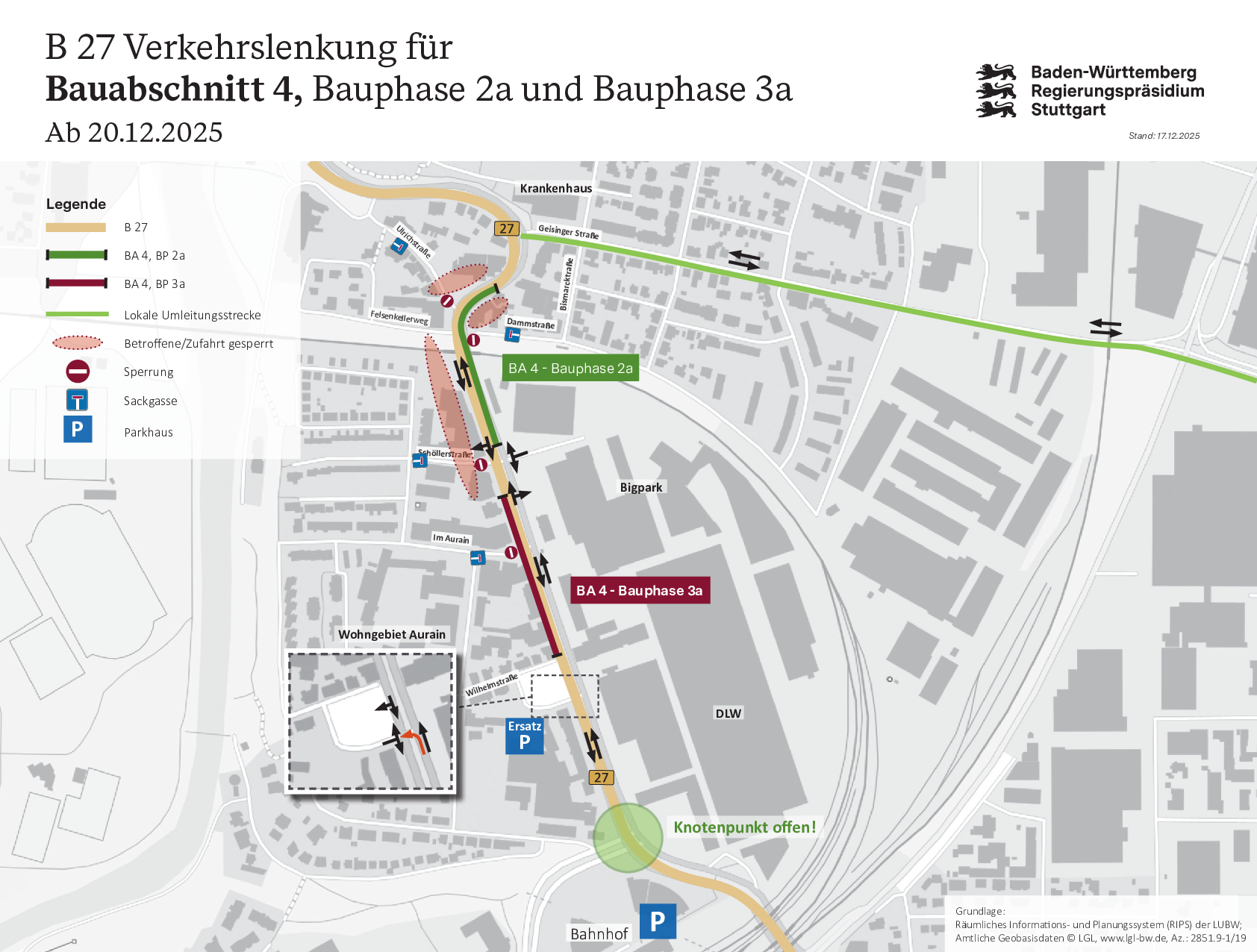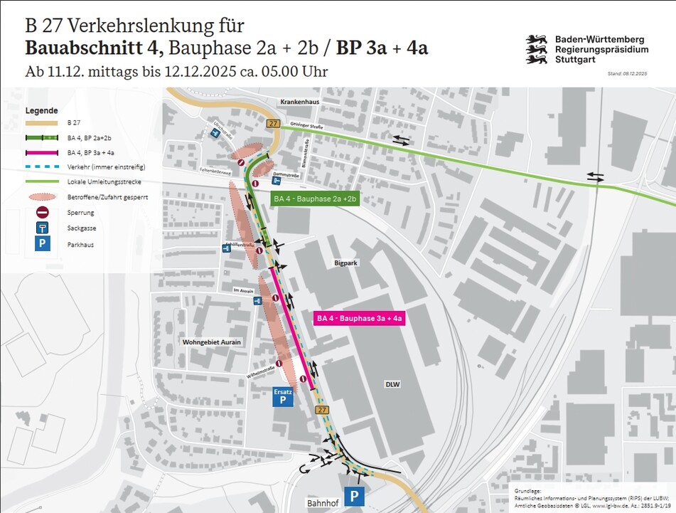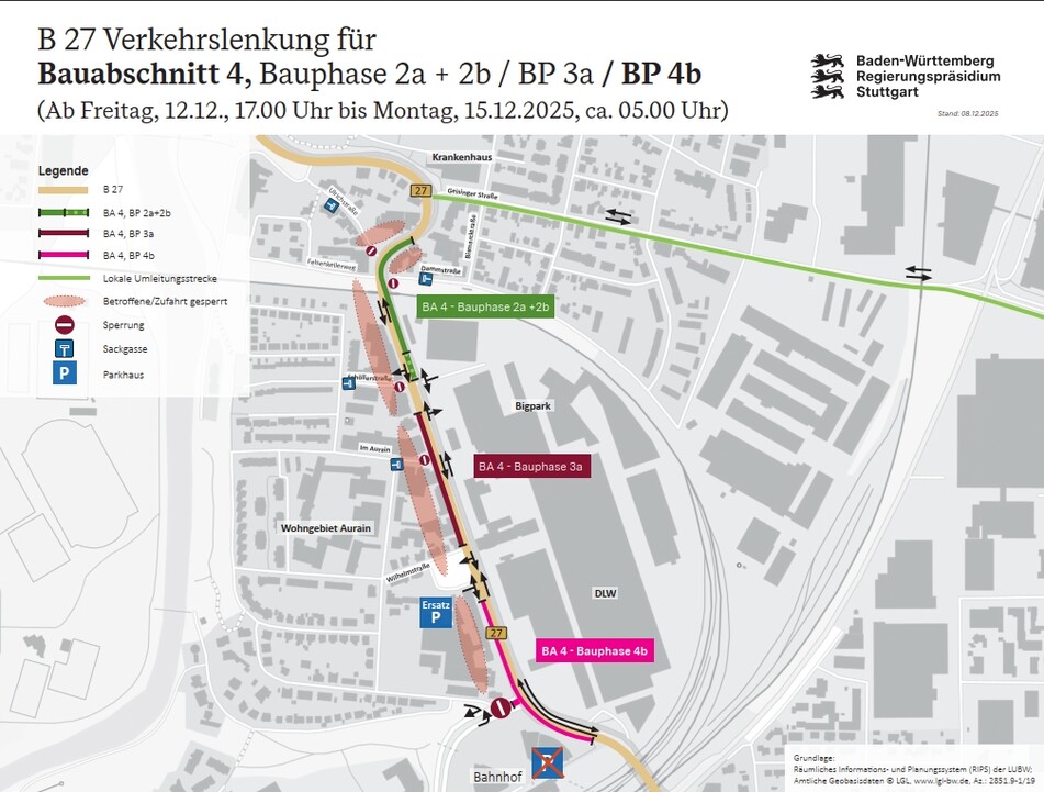 Einschränkungen B 27 Bauabschnitt 4, Bauphase 2 und 3a