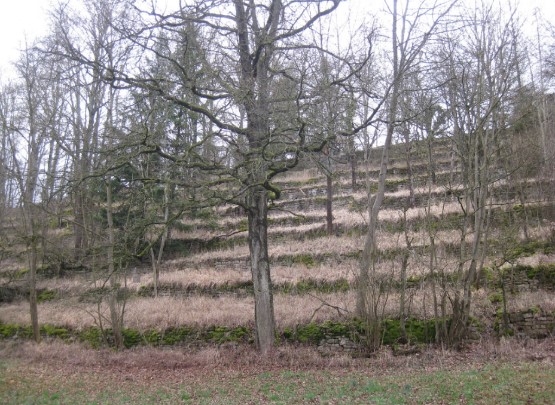 Gebüsch und Wald auf ehemaligen Weinberg-Terrassen