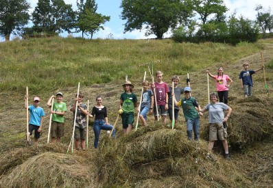 Das Zusammenrechen und Entfernen des Mähguts ist unerlässlich, damit der Fläche Nährstoffe entzogen werden und die seltenen, aber meist konkurrenzschwachen Pflanzenarten der Halbtrockenrasen erhalten bleiben. Bei diesen Tätigkeiten können Freiwillige im Rahmen von Landschaftspflege-Tagen, Umwelt-Workshops, Teambuilding-Projekten o.ä. helfen.