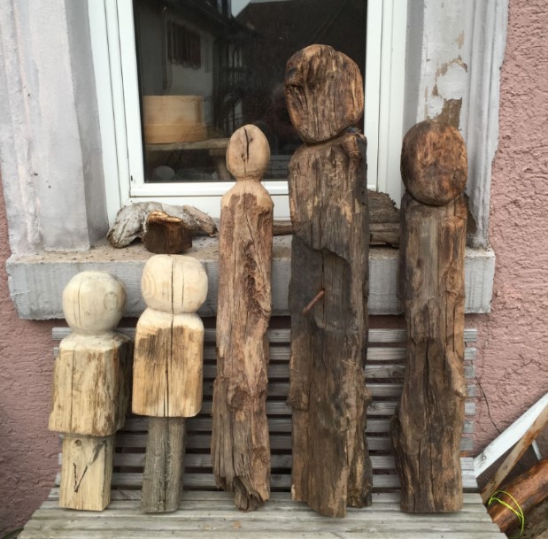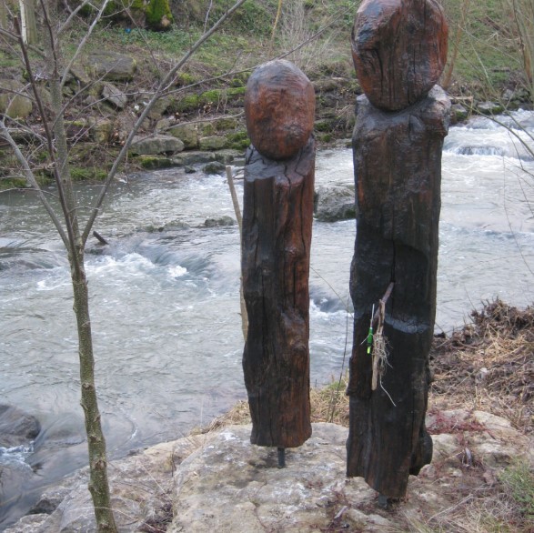 Wie Wächter des Flusses oder der Talauenlandschaft stehen sie da: Holzfiguren, die der Künstler „Mettermännle“ getauft hat. Sie erinnern an Menschen, die im Tal gearbeitet haben oder arbeiten, unterwegs waren oder noch unterwegs sind oder die überhaupt sich eins fühlen mit der reichhaltigen Kulturlandschaft. Werner Wahler ist ein regionaler Künstler. Seit 2004 arbeitet er mit Holz und anderen Fundstücken aus der Natur. Eines seiner Projekte sind die „Mettermännle“, die aus dem alten Holz, das beim Abbruch des Metterwehrs zum Vorschein kam, gekonnt herausgearbeitet wurden. Die „Mettermännle“ sind vielleicht aber auch als Mahnung zu verstehen, sorgsam mit der Landschaft und deren Natur und Kultur umzugehen. Das heißt Respekt vor Fluss, Wiesen, Weinbergen und den anderen Arealen.