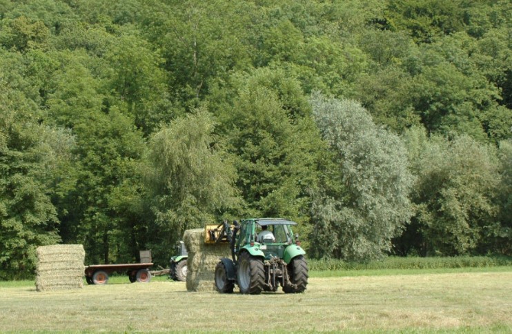 Das Gras der gut wasserversorgten „Talwiesen“ im Mettertal wird siliert oder als Heu (meist als Großballen) verkauft.