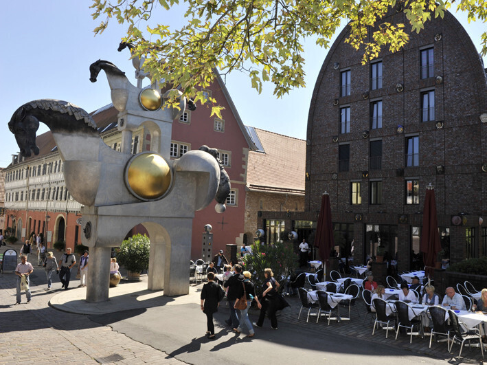 Gestaltet von den Architekten Prof. Jo Frowein und Dieter Schäffer sowie künstlerisch abgerundet durch Jürgen Goertz bereichert dieses "Haus der Köpfe" das Bietigheimer Stadtbild als wichtiger Teil der von Jürgen Goertz geschaffenen Gesamtgestaltung des Hillerplatzes.