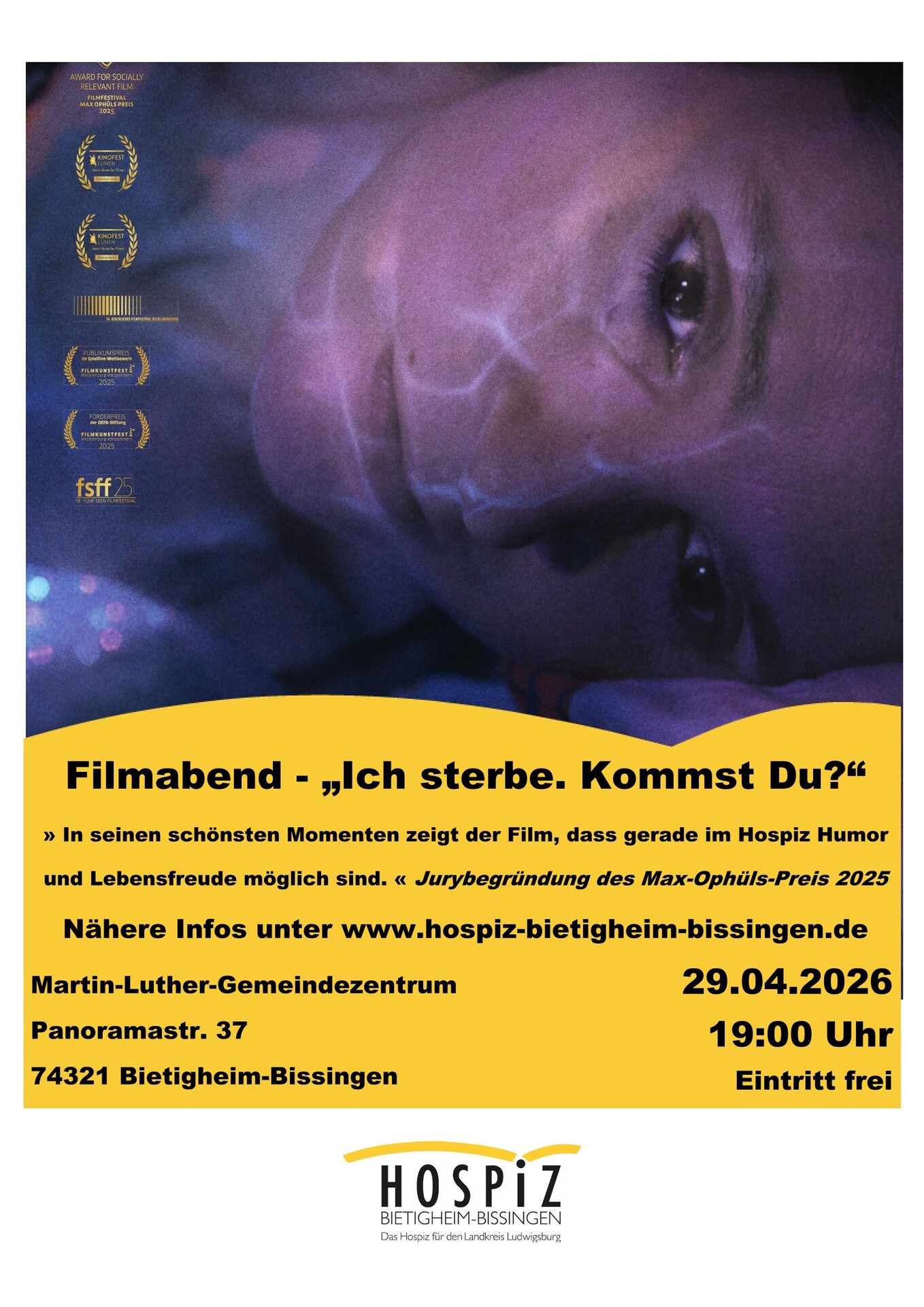 Der Filmabend findet als sog. nicht-gewerbliche Veranstaltung des Hospizes Bietigheim-Bissingen statt. Ein Kartenverkauf und Platzreservierung sind daher nicht möglich.